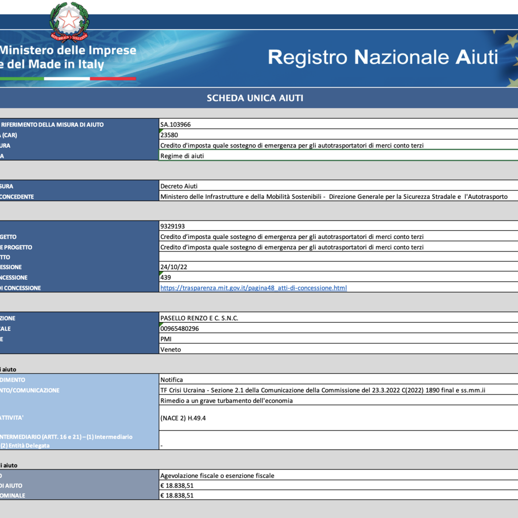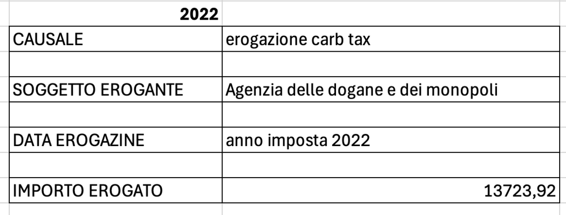 CONTRIBUTI RICEVUTI NEL 2022